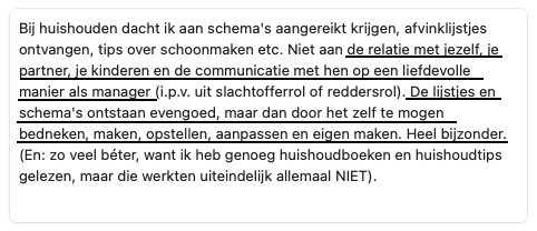 Er bleef altijd een knagend gevoel: waarom zie alleen ik de rommel? Waarom doe ik alles, terwijl de rest van het gezin het niet lijkt op te merken? Waarom doen ze alleen na een stevige discussie mee? Het voelde alsof mijn werk niet gewaardeerd werd en ik voelde me van binnen waardeloos.
