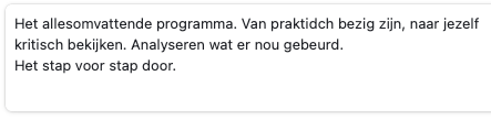 Verandering komt voor 10% uit 'onderwijs', 60% uit 'actie' en 30% uit 'coaching' voort. Zo is ook deze training opgebouwd. Je gaat dus de slag in je eigen huis en met je eigen gezin. De meeste taken overlappen met je dagelijkse dingen, dus het voelt niet als extra werk. De weekenden zijn volledig vrij van opdrachten.